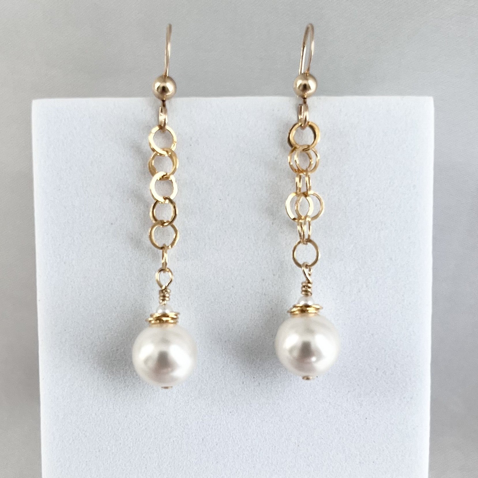 - Earrings are made with 14K gold-filled findings, chain and Swarovski crystal pearls